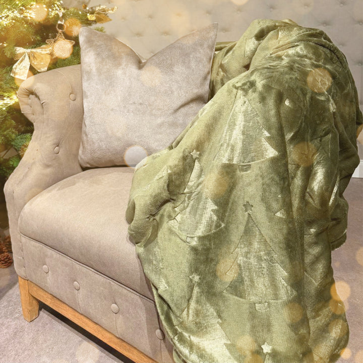 Die olivgrüne Nordic Weihnachtsdecke Juna ist mit ihrer warmen Farbe perfekt für die festliche Jahreszeit. Mit großzügigen Maßen von 170 x 130 cm bietet sie gemütlichen Komfort am Weihnachtsabend. Ohne Muster passt sie ideal zu einer Vielzahl von Dekorationsstilen und ist ein vielseitiger Begleiter für gemütliche Abende auf dem Sofa oder als stilvolle Ergänzung Deine festliche Einrichtung.