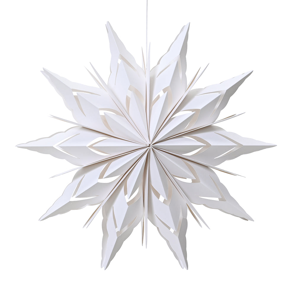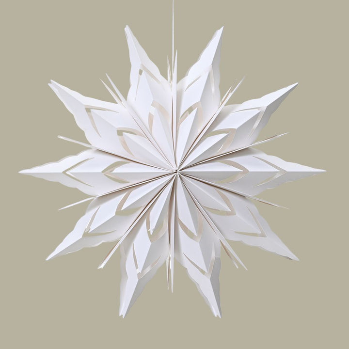 Bringe weihnachtlichen Zauber in Dein Zuhause mit unserem weißen, gezackten Papierstern. Dank seines 40 cm Durchmessers wird dieser edle Stern für stimmungsvolle Beleuchtung am Fenster sorgen, Deinen Weihnachtsbaum schmücken oder festliche Akzente im Wohnzimmer setzen. Ein himmlischer Blickfang für die besinnliche Jahreszeit!