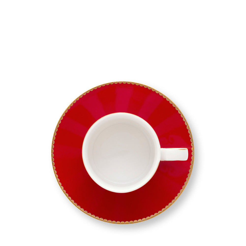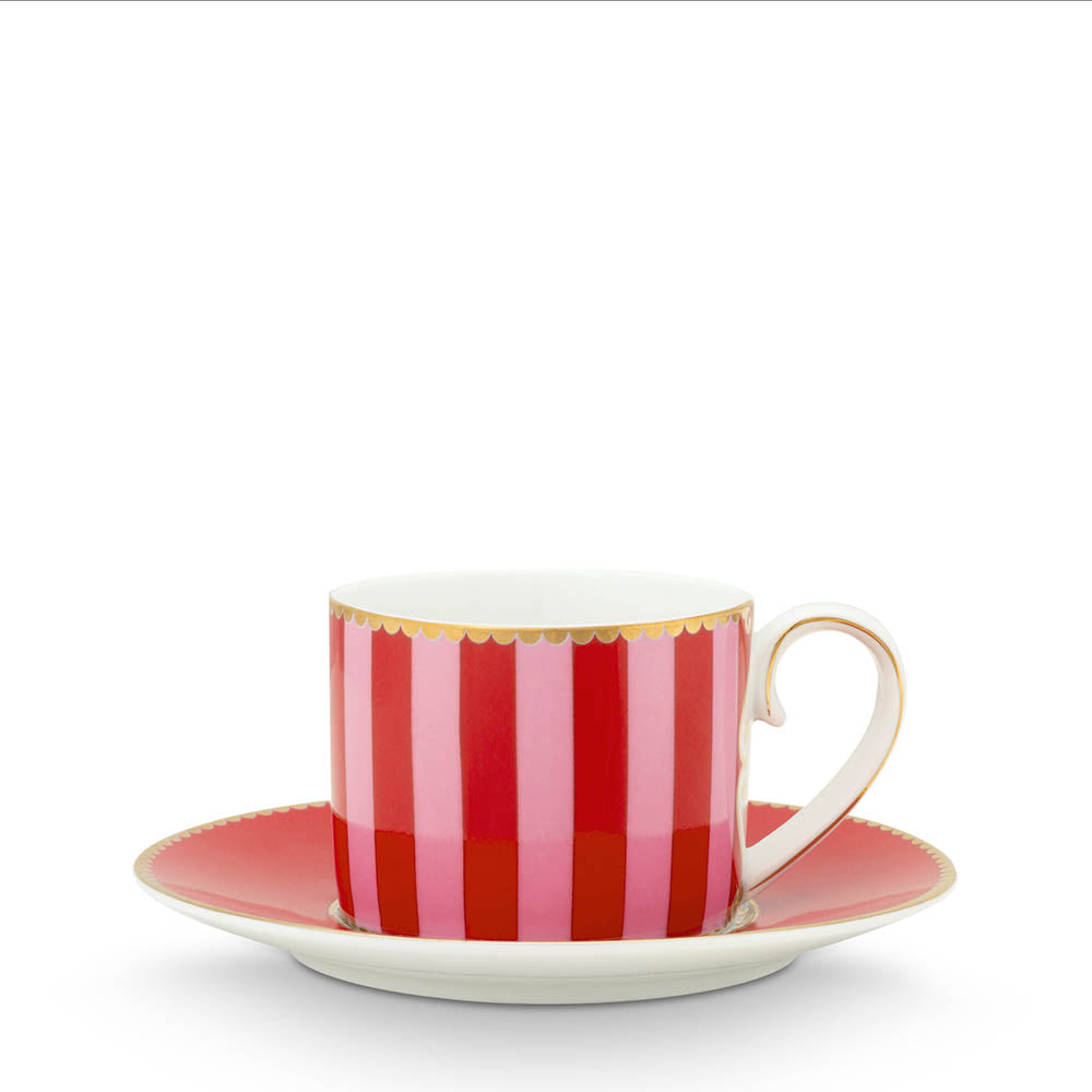 Pip Studio Espresso-Tasse mit Teller Love Birds Rot gestreift