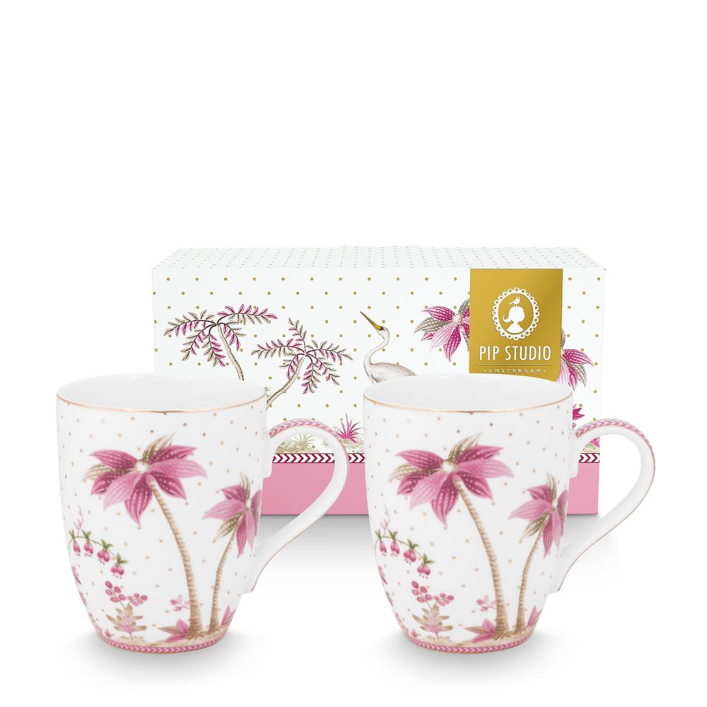 Dezente goldfarbene Punkte und rosafarbene Blumen und Pflanzen runden das Aussehen dieser großen Tassen romantisch ab. Das 2er-Set Tassen Jolie von Pip Studio hat ein Fassungsvermögen von 300 ml und lässt sich gut mit weiterem Geschirr dieser Serie kombinieren. Lasse auch Du Dich inspirieren.
