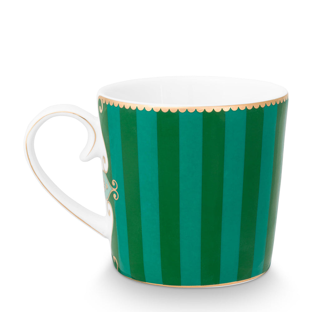 Klein, aber oho! Die Tasse Love Birds von Pip Studio wird Dich sofort begeistern. Auf grün gestreiftem Grund findest du ein fein verziertes Medaillon mit einem wunderschönen Rotkehlchen in der Mitte. Natürlich dürfen auch die für Pip typischen goldfarbenen Details auf dem Porzellan nicht fehlen. Verliebe auch Du Dich in die neue Love Birds Kollektion von Pip Studio.