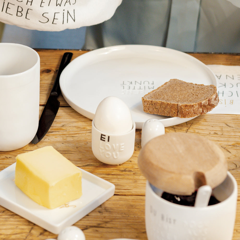 Für Deinen Frühstückstisch haben wir jetzt von Räder etwas niedlich humorvolles und zwar den Eierbecher Ei love you. Deinem Lieblingsmenschen wird dieser Eierbecher besonders gut gefallen und diesem ein Lächeln auf die Lippen zaubern. Dieser schöne Porzellan Artikel von Räder hat eine Höhe von 4,5 cm und einen Durchmesser von 5 cm.
