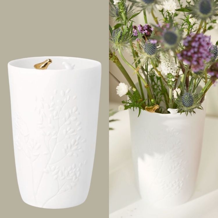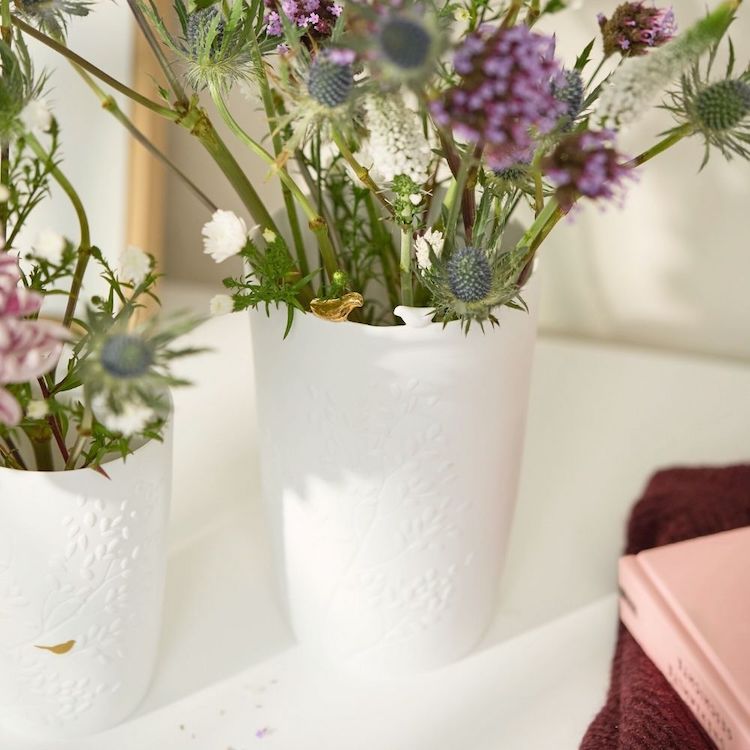 Das Porzellan ist außen matt und unglasiert, wodurch es angenehm natürlich wirkt, innen jedoch glasiert, damit Wasser und frische Blumen problemlos stehen können. So vereint die Vase elegante Optik mit praktischer Funktion – für fröhliche Blütenarrangements von den ersten Frühlingsblumen bis zu üppigen Sommersträußen.