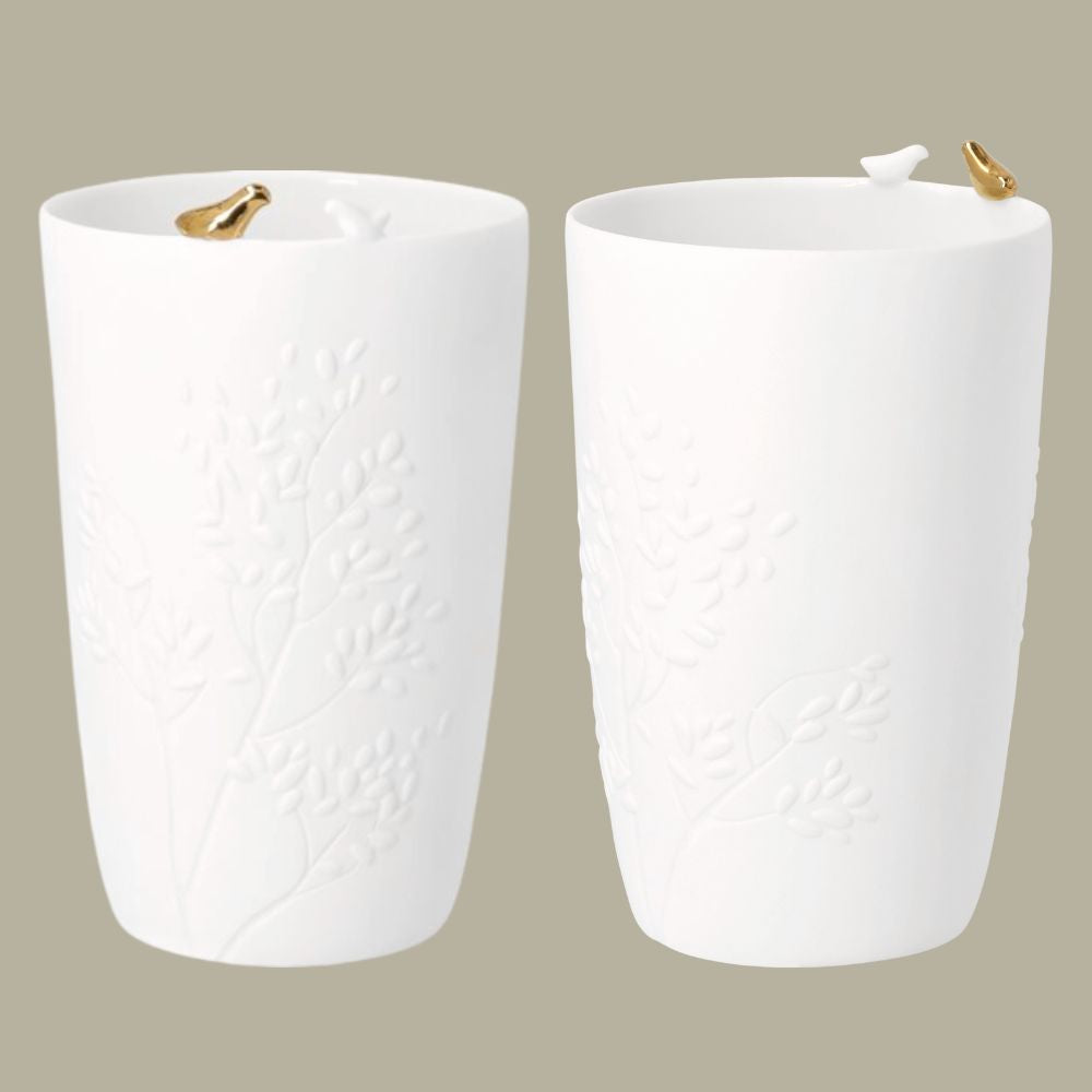 Die Vase selbst ist ein kleines Kunstwerk: Das Hoch-Tief-Relief macht die Szene besonders lebendig und stimmungsvoll. Jeder Ast, jedes Blatt und jeder Zweig wirkt wie ein Stück Miniaturgarten, das den Frühling in dein Zuhause holt. Sogar ohne Blumen entfaltet die Vase ihre Schönheit und wird zu einem dekorativen Blickfang, der zum Verweilen und Träumen einlädt.