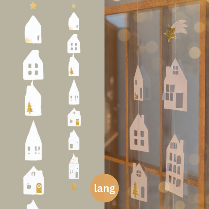 Wenn Dir noch genau die richtige Weihnachtsdekoration für die Tür, das Fenster, oder eine Wand fehlt, haben wir mit der Räder Häuschenkette Winterstadt genau das Richtige gefunden. 83,5 cm ist die Räder Kette lang und erinnert an eine Straße mit lauter festlich geschmückten Häuser. Eine schöne Nachbarschaft verziert mit goldfarbenen Lichterketten, Tannenbäumen, Geschenken und Sternen.