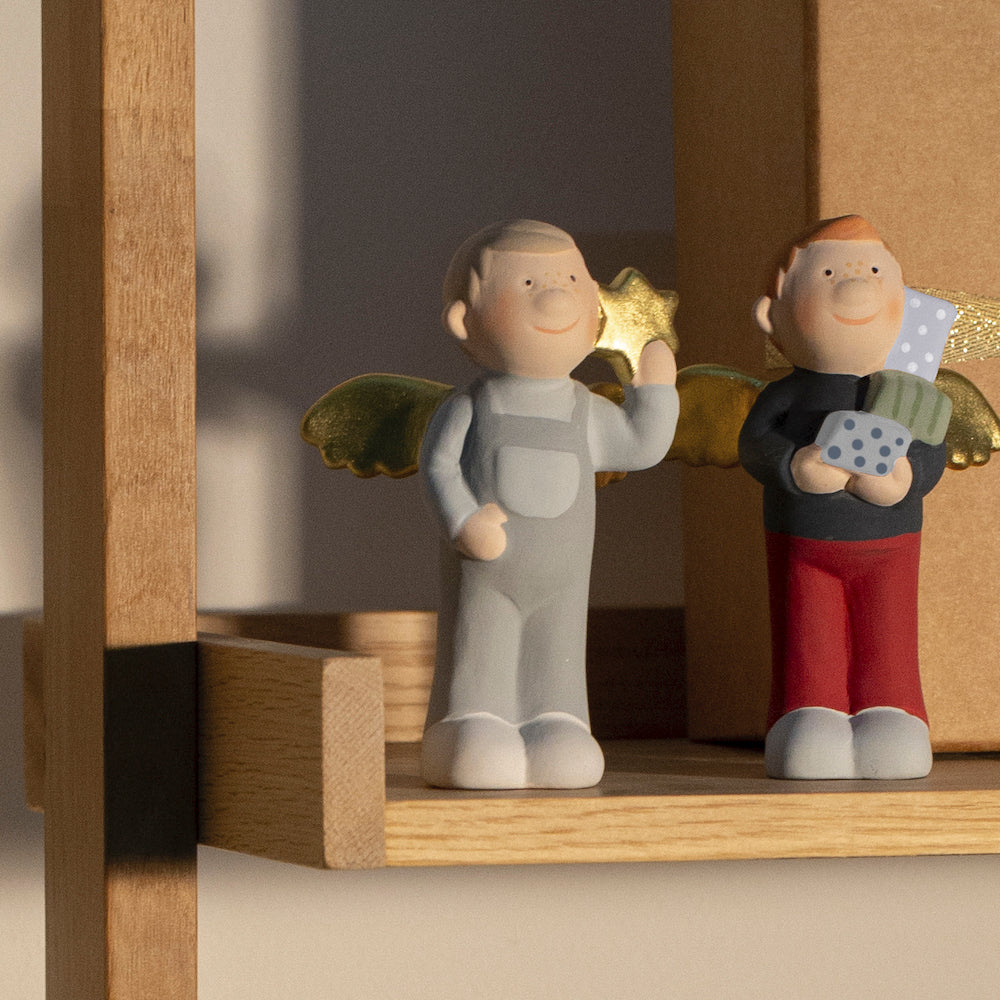 Lukas ist aus Keramik gefertigt und mit verschiedenen Farben bemalt. In der Version klein ist er 6 cm groß und findet damit Platz auch in der kleinsten Nische.