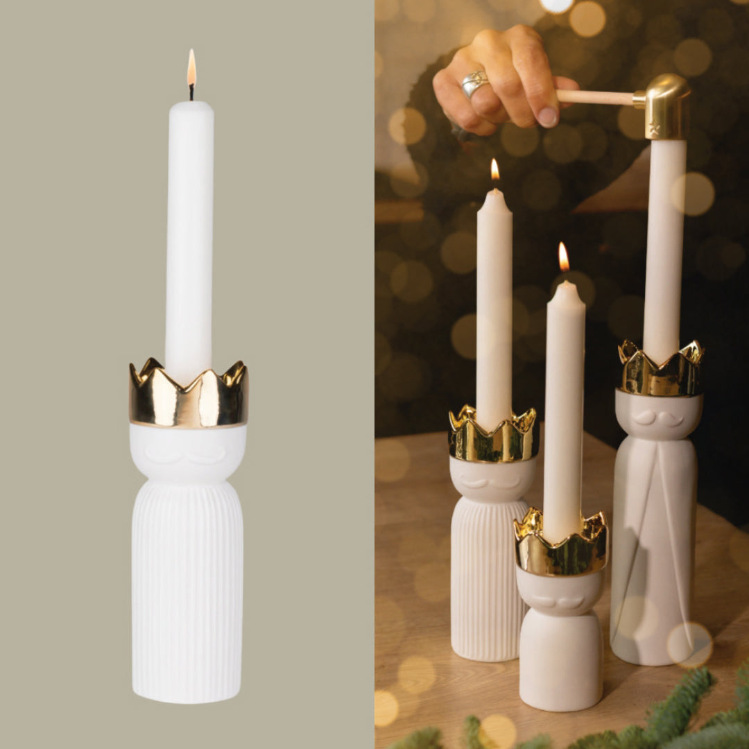 Na, wer zieht denn da bei Dir ein? Es ist Melchior, in Gestalt des Räder Porzellan-Königslicht! Einer der drei Heiligen Könige, einer der Weisen aus dem Morgenland. Wie auch damals in Bethlehem kommt er mit froher Kunde und möchte gemeinsam mit Dir das Weihnachtsfest einläuten, um an die Geburt von Jesus Christus zu erinnern. Mit einer goldfarbenen Krone geschmückt kommt das Räder Königslicht zu Dir nach Hause, um mit seinem Kerzenschein für festliche Stimmung zu sorgen. Werden die anderen Könige, Balthasar und Caspar, vielleicht auch noch ihren Weg zu Dir finden?