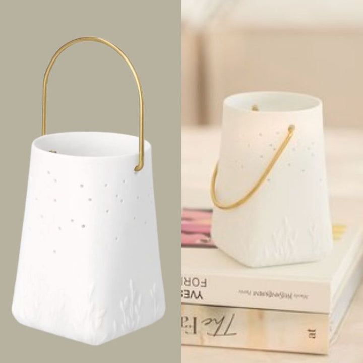 Stelle ein Teelicht hinein und erfreue dich an dem warmen, heimeligen Licht, das sich sanft im Raum ausbreitet. Beinahe wie echte Gräser umschließt das feine Relief die Laterne und verleiht ihr eine natürliche, ruhige Ausstrahlung. Durch die kleinen Öffnungen funkelt der Kerzenschein wie Sterne über einer stillen Waldlichtung und sorgt für eine besonders stimmungsvolle Atmosphäre.