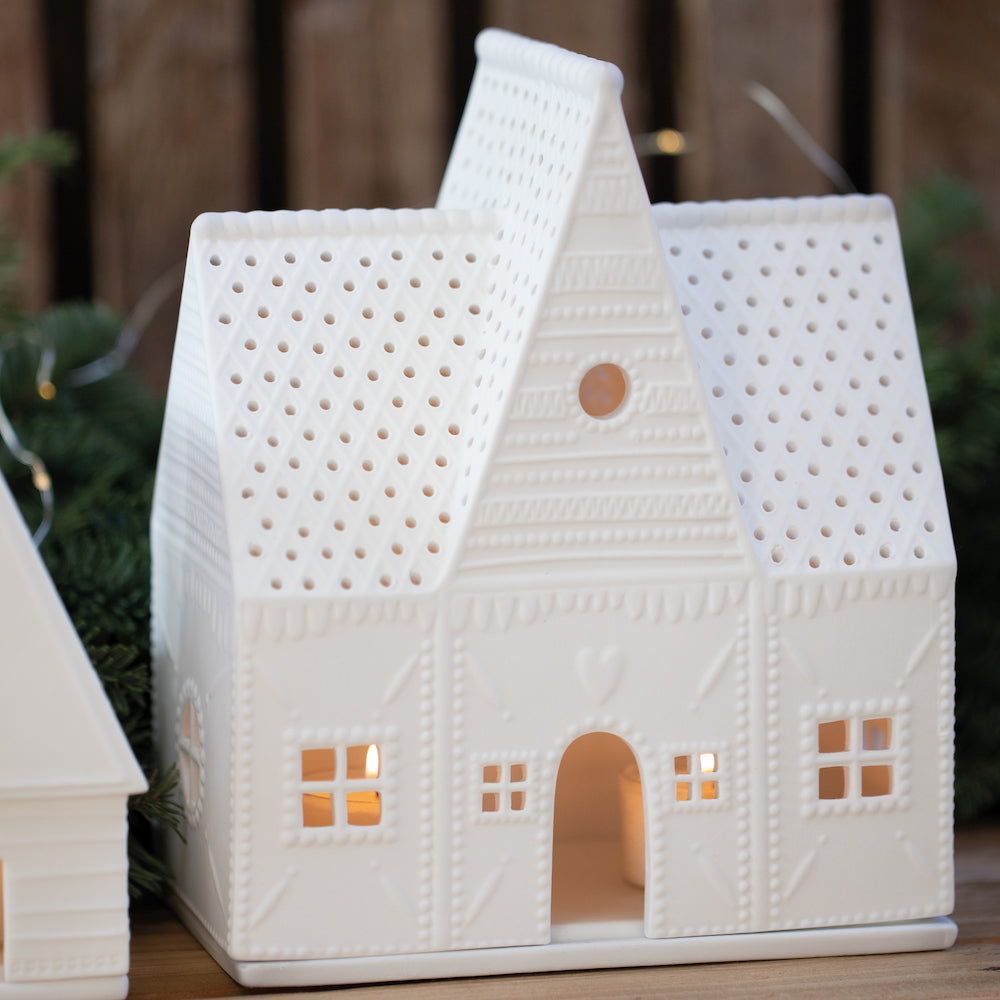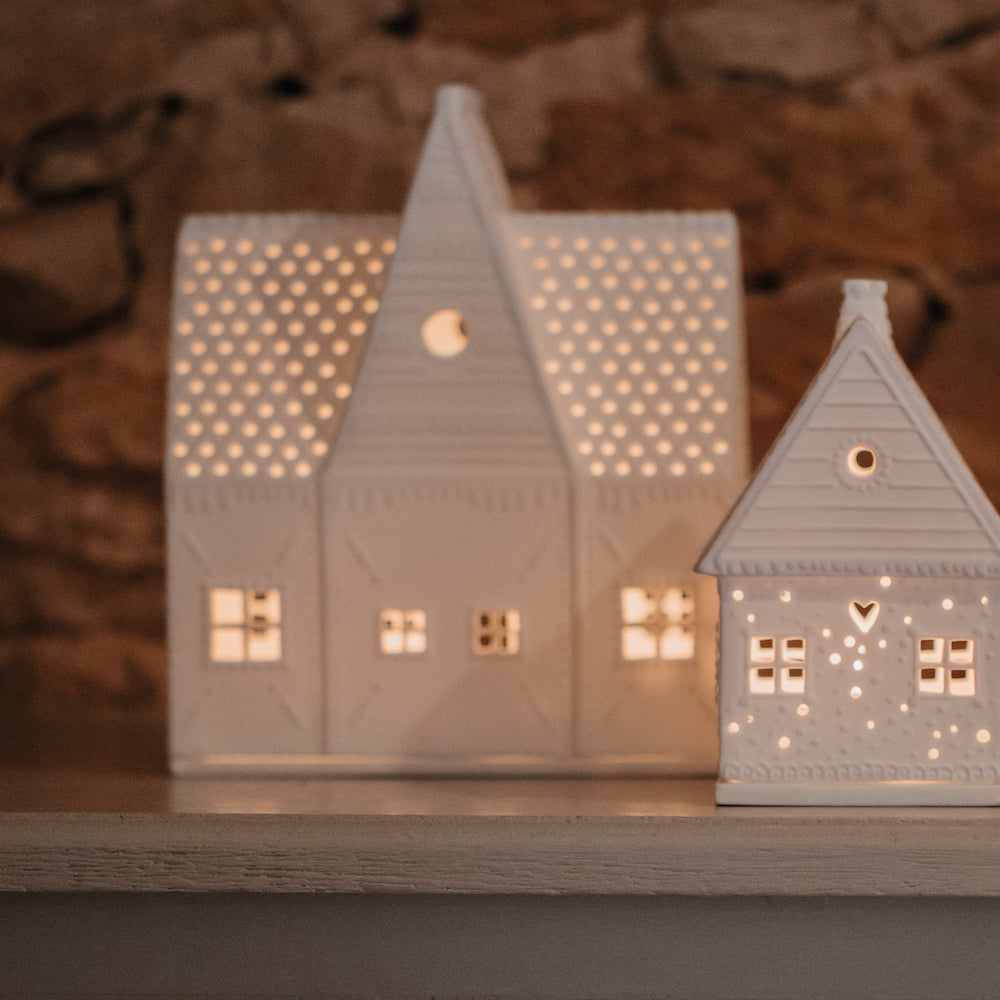 Das Räder Lebkuchen Lichthaus groß erinnert Dich daran, wie gerne Du Dein gerade fertig gebasteltes Lebkuchenhaus am liebsten direkt aufgegessen hättest. Mit seiner Größe von 16,5 x 9 x 20 cm macht es ganz schön was her und fällt sofort auf! Hebst Du Dein Lebkuchenhaus an findest Du darunter eine Porzellanplatte die als Kerzenhalter dient, aber welche Lichtquelle Du nimmst ist ganz Dir überlassen.