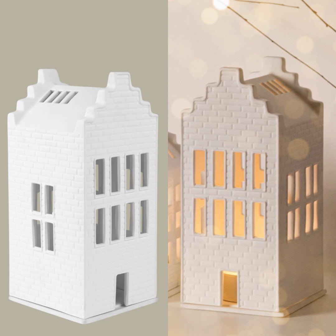 Mit diesem wunderschön gearbeiteten Lichthaus von Räder verzauberst Du Dein Zuhause in ein gemütliches Heim. Egal ob Sommer oder Winter - das große Backsteinhaus wird, bestückt mit einem Teelicht oder einer kleinen Lichterkette, stimmungsvoll erstrahlen. Das Lichthaus ist aus feinem Porzellan gefertigt und besitzt eine Bodenplatte, die als Kerzenteller dient. Kombiniere das Bachsteinhaus mit weiteren Lichthäusern von Räder und erschaffe ein wundervolles Lichtermeer auf Deiner Fensterbank.