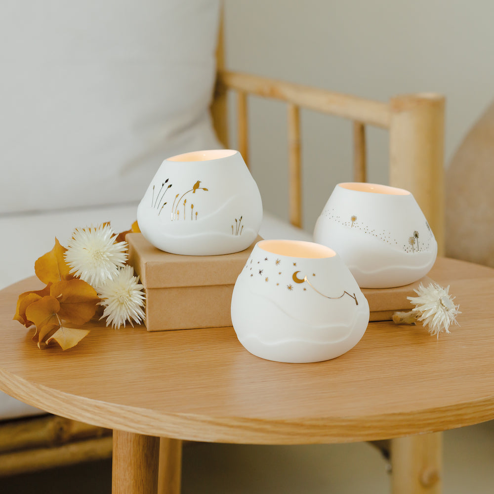 Mit dieser kleinen Lichtlandschaft Mond von Räder lernst Du das Träumen. Entzünde ein Licht und lasse Deiner Fantasie freien Lauf. Entdecke das Relief und das goldfarbene Dekor des Porzellanlichts und erschaffe Deine persönliche Wohlfühloase.