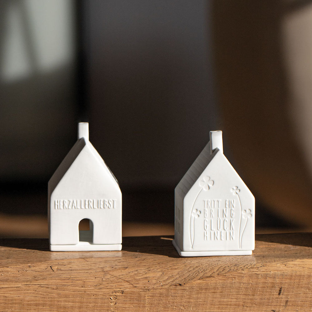 Eine nette, kleine Botschaft für jeden Gast: das Lichthaus Tritt ein bring Glück hinein von Räder. Das wird durch das Kleeblatt Muster perfekt unterstrichen! Mit 7 x 10 x 7 cm passt es in Den Eingang Deines Hauses oder jeden anderen Ort, an dem Du Deine Gäste gerne besuchst. Zum Leuchten bringst Du es übrigens, indem Du das Haus anhebst und ein Teelicht auf der Bodenplatte versteckst.
