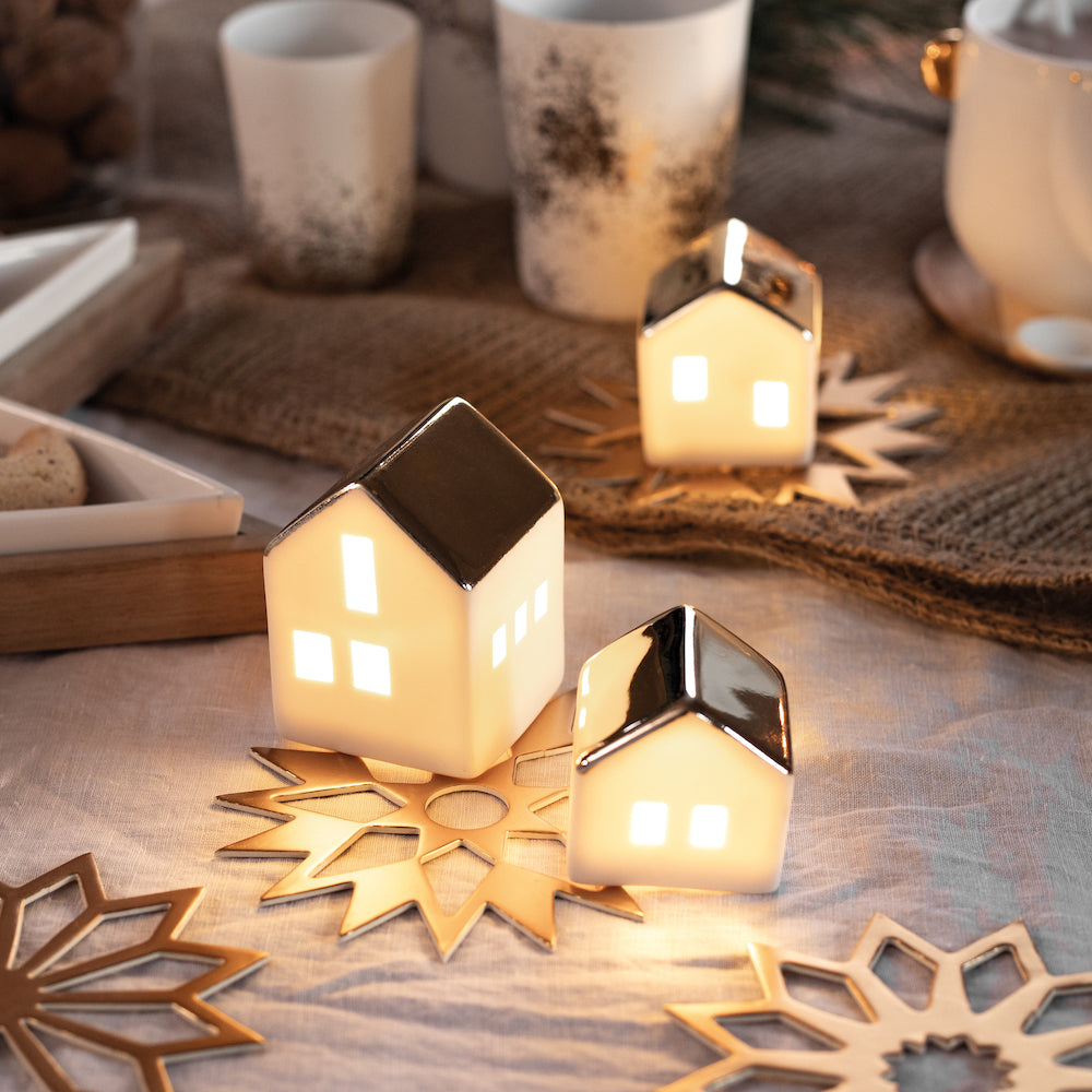 Das kleine, batteriebetriebene Mini LED Lichthaus wird Dich besonders in der Weihnachtszeit begeistern. Das kleine Porzellanhaus von Räder wird mit zwei LR44 Batterien betrieben, sodass Du das kabellose Häuschen als Dekoration hinstellen kannst, wo Du möchtest, damit es viel festliche Stimmung verbreiten kann mit seinem kleinen, aber dafür gemütlichen Licht.
