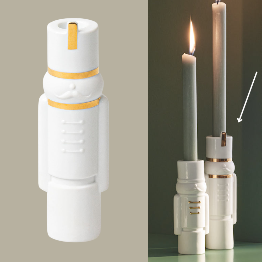 Dürfen wir Dir den stattlichen Nussknacker Magnus vorstellen? Nussknacker gehören zu jedem Weihnachtsfest und deshalb darf der Räder Nussknacker Kerzenhalter Magnus bei Dir einfach nicht fehlen. Magnus hat eine Höhe von 18 cm und einen Durchmesser von 4 cm. Verziert ist das weiße Porzellan des Nussknackers mit goldfarbenen Details, die im Kerzenschein anfangen zu schimmern und für tolle Weihnachtsstimmung sorgen. Lasse den Nussknacker Magnus von Räder zum festlichen Hingucker auf dem Tisch, der Kommode oder dem Sideboard werden.