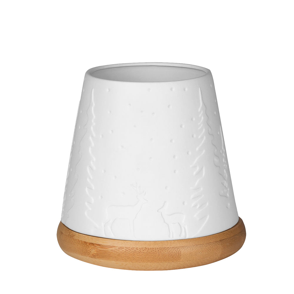 Zur Weihnachtszeit sorgt das Räder Poesielicht mit dem winterlichen Wald für eine warme, angenehme Stimmung. Rehe haben sich im Tannenwald verirrt, der rieselnde Schnee wird immer mehr. Jetzt fehlt nur noch ein Teelicht, das Du in die Mitte des Holzes setzen kannst, damit den Rehen ganz warm wird und der schneebedeckte Wald anfängt zu strahlen. Das festliche Poesie Windlicht von Räder hat einen Durchmesser von ca. 11 und eine Höhe von 10,5 cm.