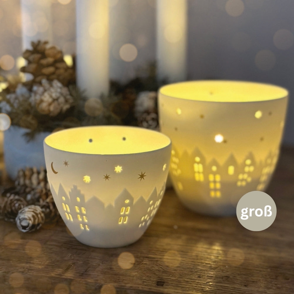 Das Räder Poesielicht Häuser ist perfekt um einen Abend in gemütliche und romantische Stimmung zu hüllen. Der Winterstadt wird Leben eingehaucht und der Sternenhimmel fängt an zu scheinen, wenn Du ein Teelicht in das Räder Porzellan-Poesielicht setzt.