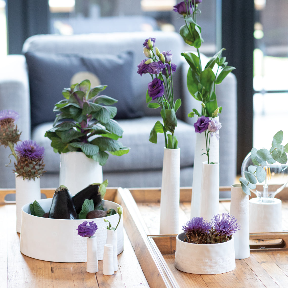 Die Raumpoesie Vase klein von Räder ist aus feinstem Porzellan gefertigt, das mit seiner schlichten Eleganz in jedes Raumkonzept passt. Die Vase hat eine Größe von 17 cm und einen Durchmesser von 4,5 cm. Damit ist sie zwar nicht die größte Kandidatin unter den Vasen, aber mit Sicherheit eine der Schönsten. Oben im Rand der Vase sind einige Blumennamen eingeprägt, die für Frühlingsgefühle und Sommerfeeling sorgen. Hydrangea, Iris, Rosa oder Bellis – alle finden sie Platz auf und in der Raumpoesie Vase klein. Übrigens: Auch für den Herbst findet sich was, denn Helianthus (Sonnenblumen) halten sich auch bis weit in den Winter hinein.