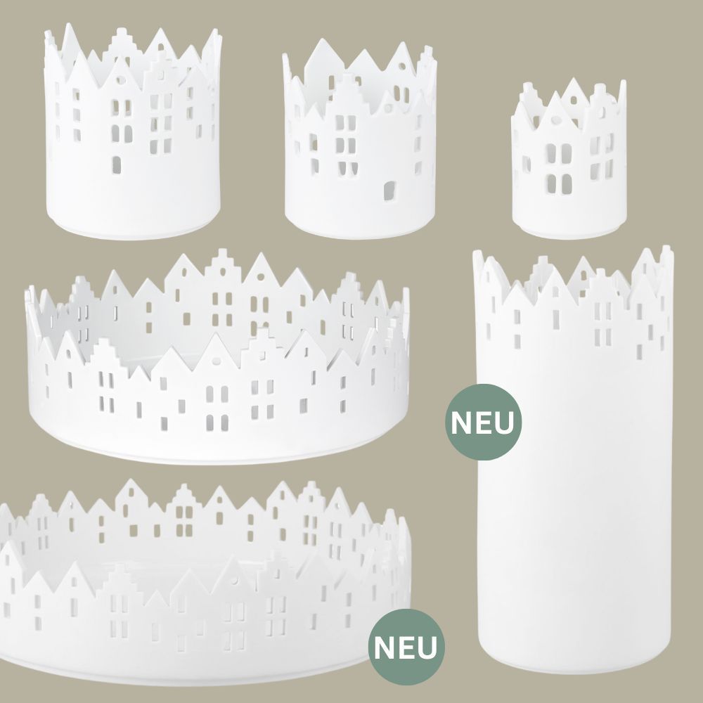 Das weiße Stadtlicht Rathausplatz von Räder mit seinen zahlreichen Fenstern ist aus feinstem Porzellan handgefertigt. Mit einem Teelicht bestückt, verbreitet das Schmuckstück ein angenehmes Licht und lädt zum Träumen ein. Lasse auch Du Dich von unseren Räder-Produkten verzaubern.