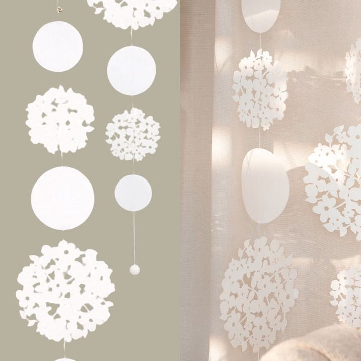 Zarte Streublüten und filigrane Kreise vereinen sich zu einer einzigartigen Dekoration, die den Frühling in dein Zuhause bringt. Diese liebevoll gestaltete Kette von Räder verbindet natürliche Blütenformen mit eleganten Rundungen und schafft so ein harmonisches Gesamtbild voller Leichtigkeit und Frische.