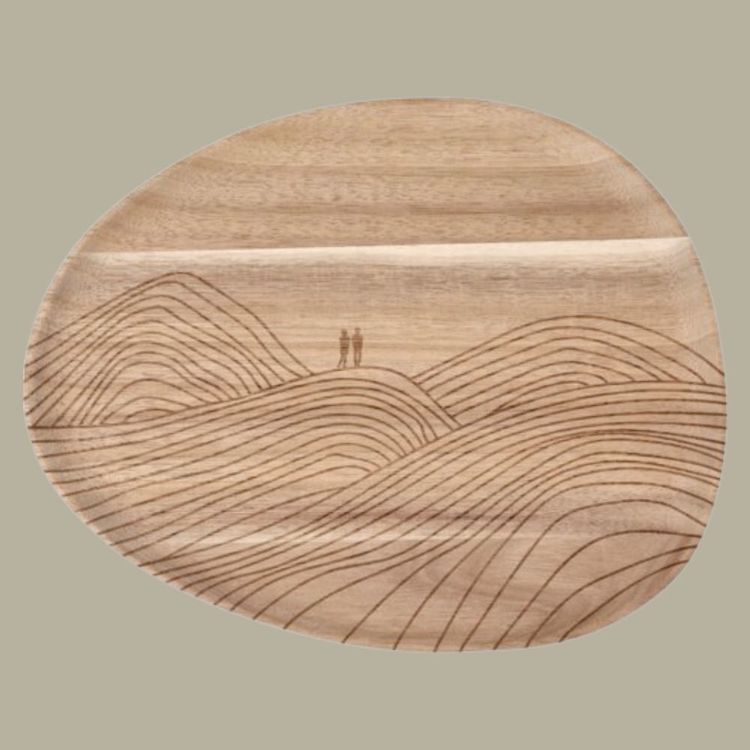 Das Tablett aus hochwertigem Akazienholz überzeugt durch seine warme, natürliche Ausstrahlung und seine angenehme Haptik. Besonders ins Auge fällt das fein gelaserte Motiv, das von Fernweh, Aufbruch und Abenteuer erzählt. Es weckt die Lust auf neue Wege, fremde Orte und kleine Fluchten aus dem Alltag.
