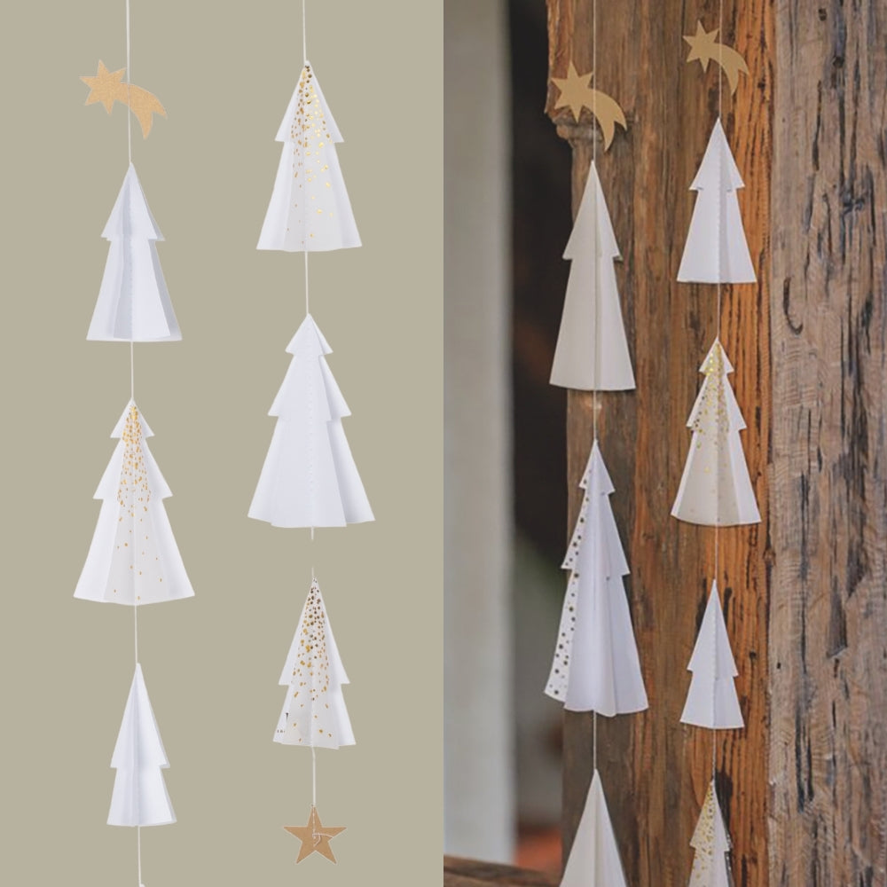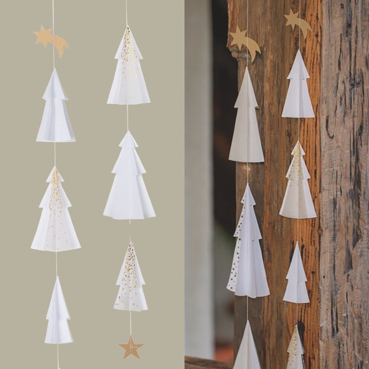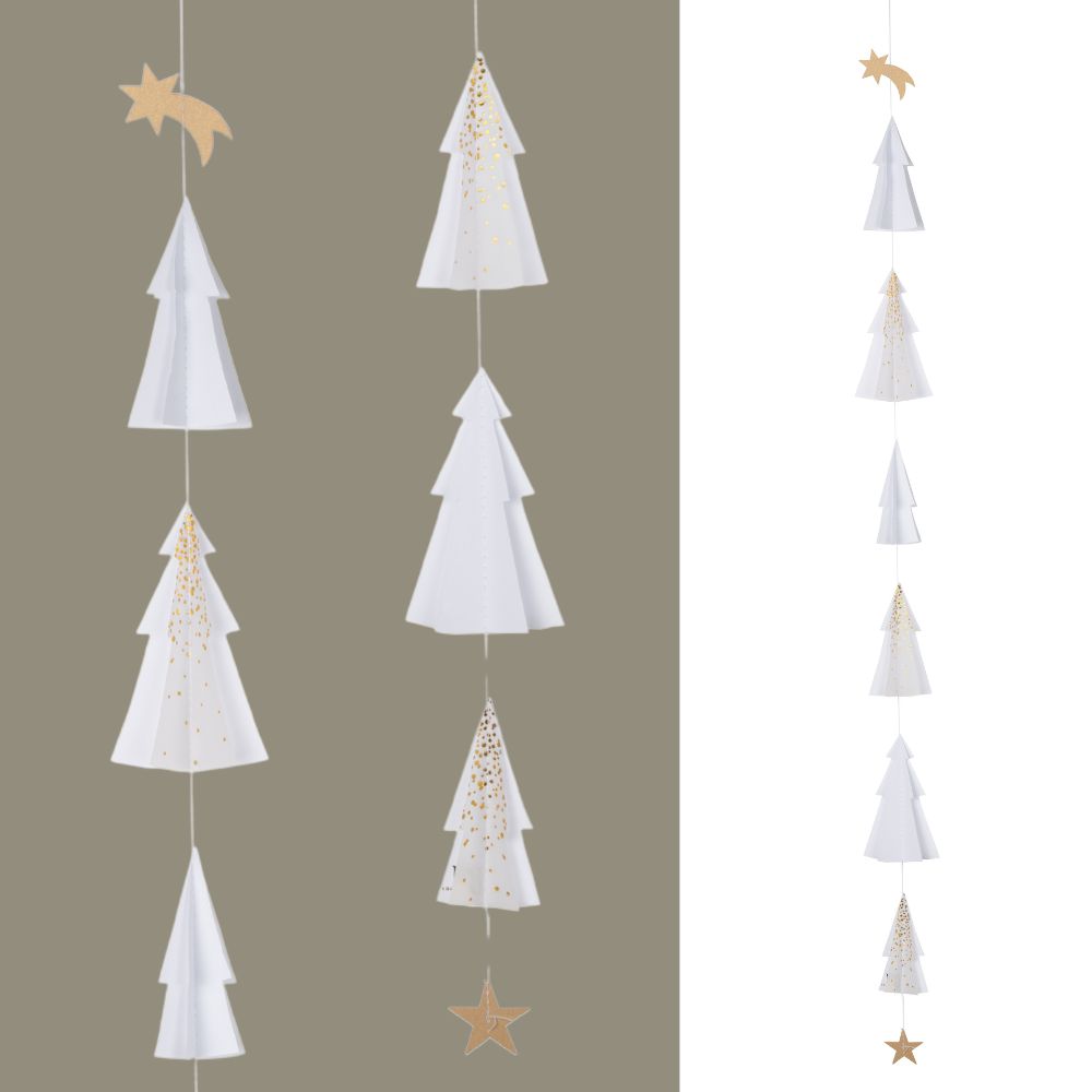 Die Tannenkette gibt es in zwei Versionen mit unterschiedlicher Länge und unterschiedlich vielen aus Papier gefertigten Bäumen. Die längere Version enthält sechs Tannenbäume und hat eine Länge von 76 cm, womit sie sich wunderbar für Deine Fenster oder Türen eignet. Schau Dir gerne auch hier in unserem Onlineshop die kürzere Version an und lass Dich von der Stimmung, die diese Ketten vermitteln, verzaubern.