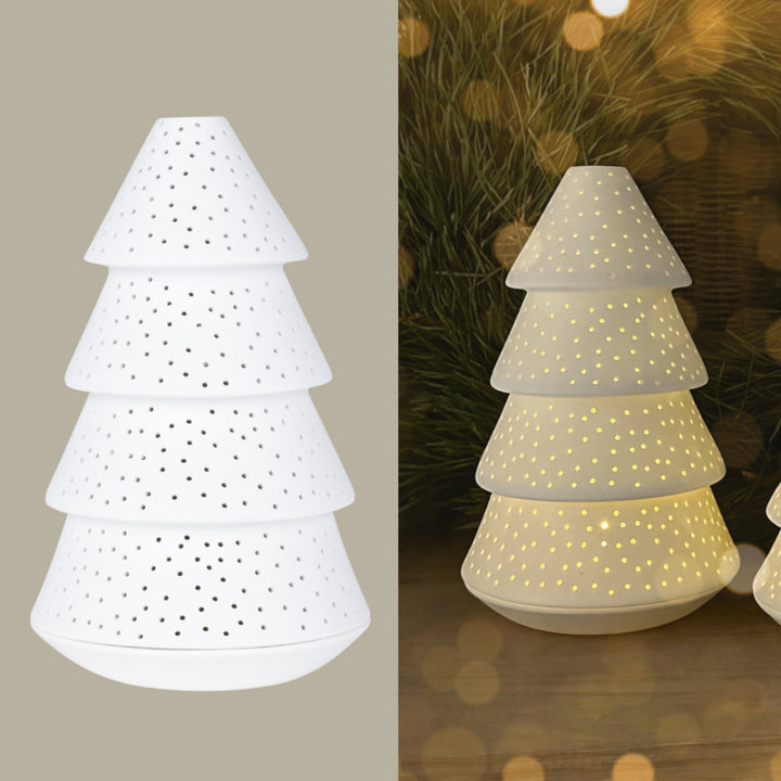 Die richtige Portion Weihnachtstimmung bringt Dir das Räder Tannenlicht in Groß mit in Dein schönes Zuhause. Mit ihrer stattlichen Größe von 21,5 x 12,5 cm wird sie zu einem tollen Hingucker, wenn es abends immer dunkler wird. Durch die vielen Löcher der Räder Porzellantanne fällt das Licht im Inneren auf eine magische Weise und sorgt für gemütliche Wohlfühlstimmung.