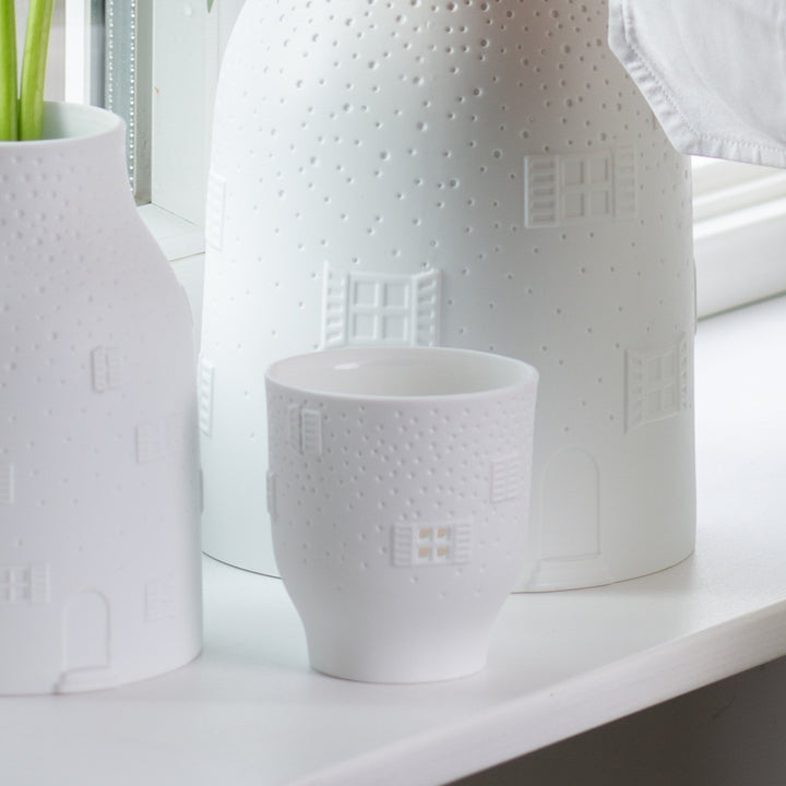 Es ist eine ganz ruhige und friedliche Atmosphäre, die durch das Fensterlicht aus unglasiertem Porzellan von der Firma Räder ausgestrahlt wird. Auch Dir wird sie den Abend verschönern und Deine Augen so manches Mal darauf verweilen lassen.