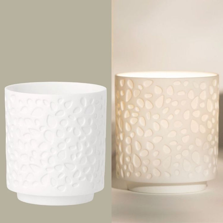Der Teelichthalter überzeugt nicht nur durch sein bezauberndes Design, sondern auch durch seine hochwertige Verarbeitung. Das stabile Porzellan sorgt dafür, dass das Licht sicher gehalten wird, während das Relief eine besondere Haptik bietet, die den Halter zu einem echten Lieblingsstück macht.