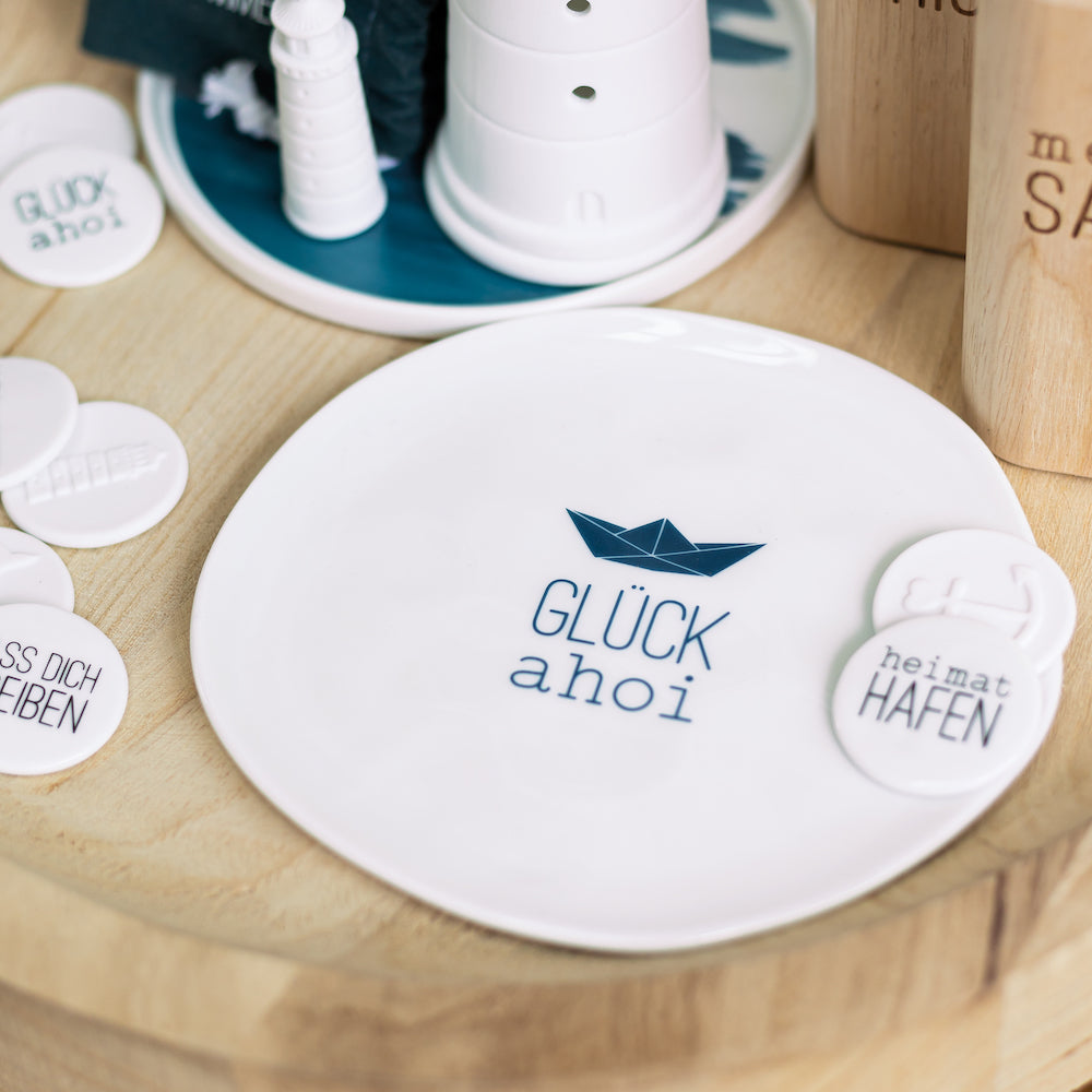 Glück ahoi! Kurz vor der Führerscheinprüfung, dem Auslandsaufenthalt oder überhaupt dem neuen Lebensabschnitt kann mann ein bisschen Glück schon gut gebrauchen. Mit dem Teller Glück ahoi von Räder wünschst du Glück mal anders. Bestücke das 14 cm große Tellerchen mit ein paar Pralinen und lieben Worten und schon hältst Du das perfekte Glücksbringergeschenk in der Hand. Lasse Dich von den trendigen Räder-Produkten überrraschen.