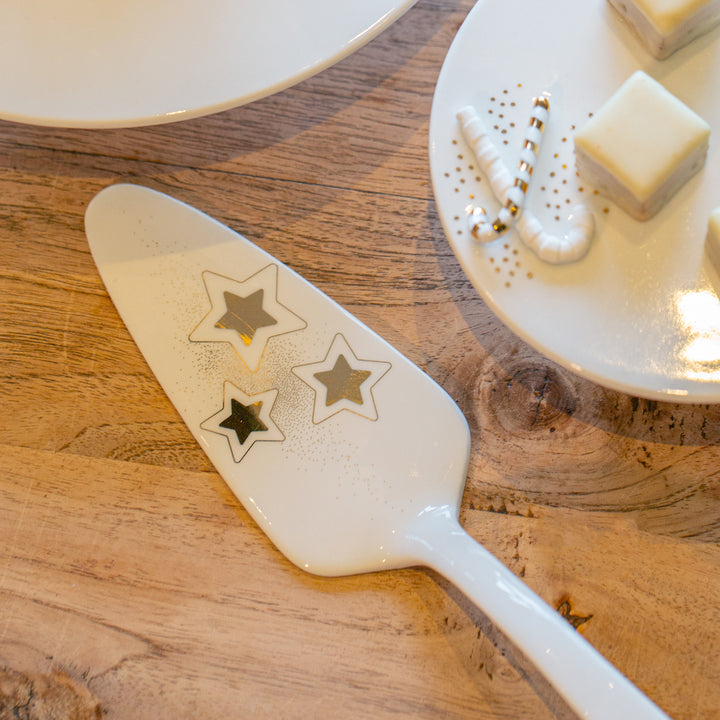 Der Tortenheber Zimtsterne von Räder wird Deinen Genuss schon vor dem ersten Bissen in höchste Höhen steigern. Aus glasiertem Porzellan mit Decal wird er augenblicklich zum heimlichen Star auf Deiner Tafel aufsteigen. Wobei augenblicklich eigentlich gar nicht der richtige Begriff ist, denn auf diesem hübschen Stück werden die Blicke mit Sicherheit länger verweilen. Die drei goldfarbenen Sterne und die Andeutung von Zimtstaub werden problemlos dafür sorgen, dass Deine Gäste wissen: Hier ist nicht nur ein Genießer am Werk gewesen, der mit Liebe gebacken hat, hier weiß auch jemand sein Werk geschmackvoll zu präsentieren.