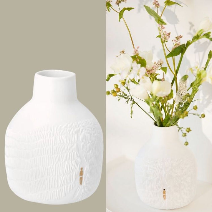 Vielleicht pflückst du ein paar Gräser, Blüten oder kleine Wildblumen und nimmst sie mit nach Hause. In dieser hübschen Vase von Räder, die von innen glasiert ist, finden sie einen besonderen Platz. Das feine Porzellan verleiht ihr eine elegante, zeitlose Ausstrahlung, während die zarten goldfarbenen Akzente dem Design einen stilvollen, luxuriösen Touch verleihen. So wird die Vase selbst zum dekorativen Highlight in jedem Raum.