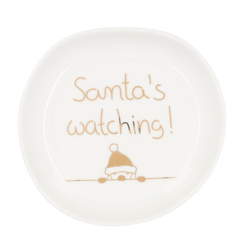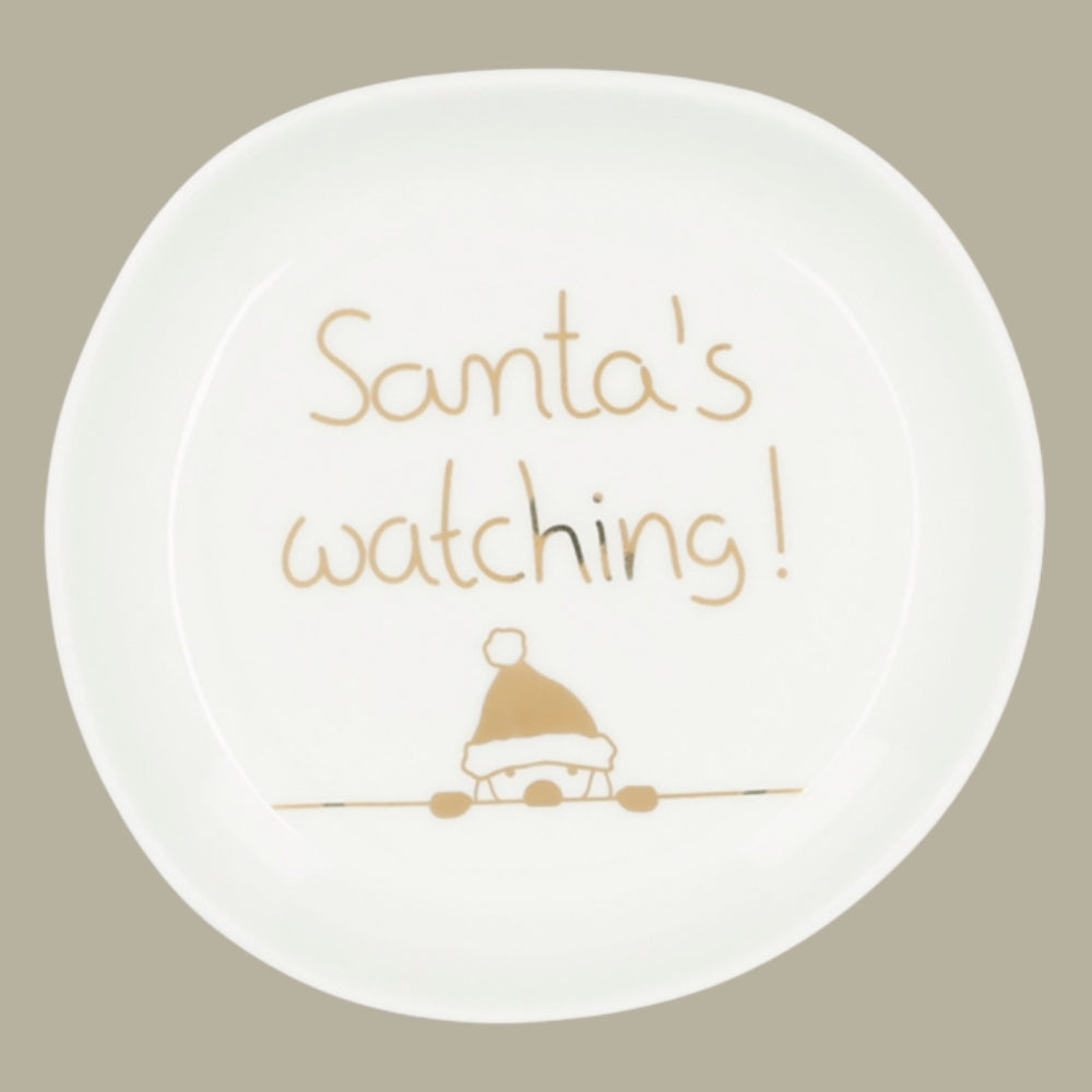 Dann nimmt er sich seine Rentiere und fliegt schon mal herbei, krabbelt durch den Schornstein und nimmt eine große Nase voller Gebäckduft. Eigentlich fährt er danach gleich wieder zurück, er hat ja zu tun. Aber die Kekse, die hier in dem Weihnachtsschälchen Santa's Watching gelegen haben, müssen es ihm ganz besonders angetan haben.