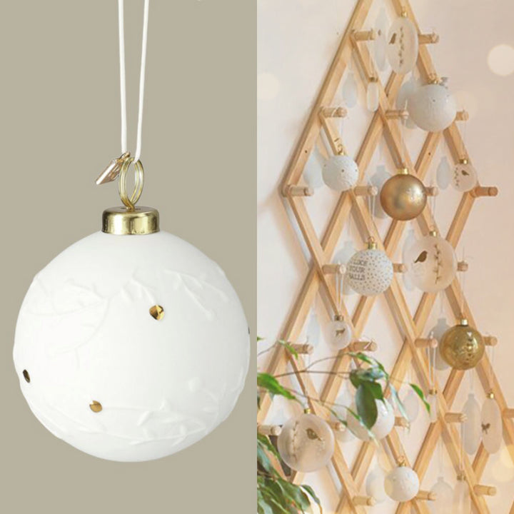 Gefertigt aus teilglasiertem Porzellan mit goldenem Decal und Metallaufhängung wird sie zu einem stilvollen und beinahe luxuriösen Bestandteil Deines Weihnachtsfestes.