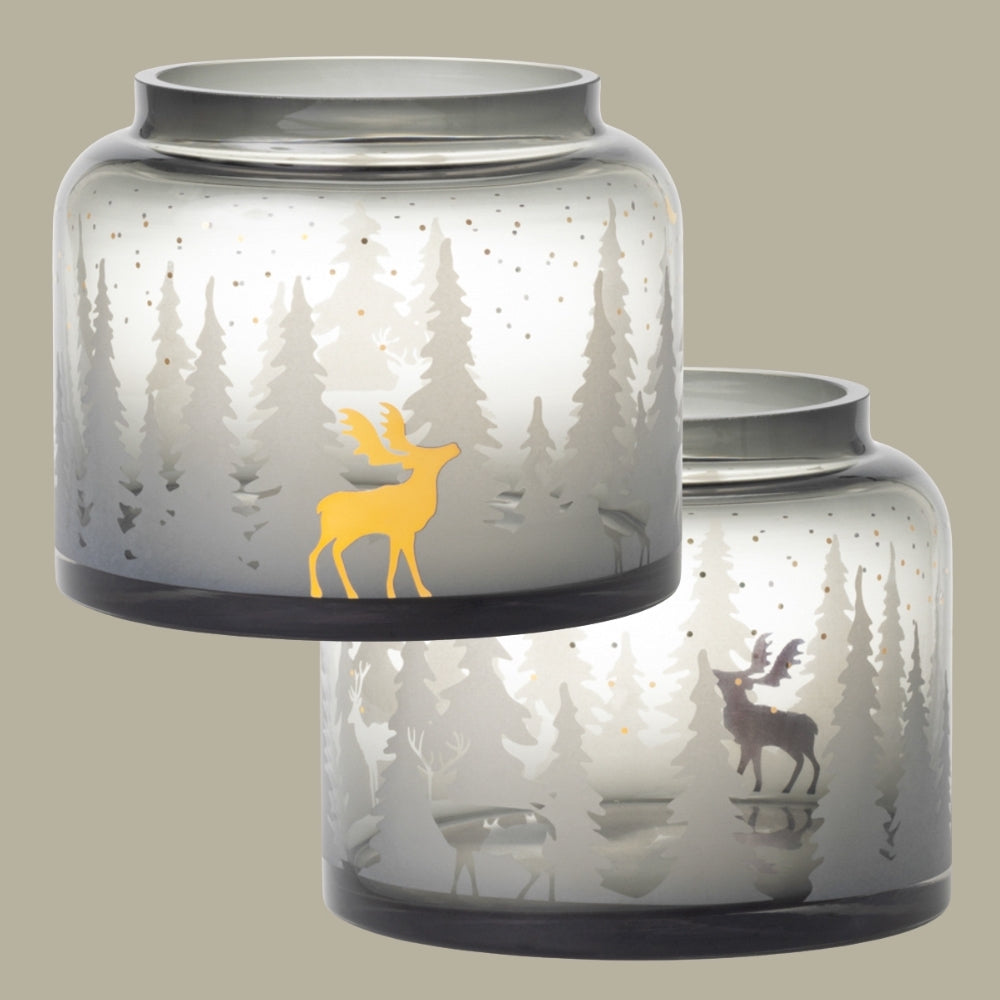 Hole Dir mit der Wintervase Waldlandschaft von Räder eine kleine Schneelandschaft nach Hause und hauche der Glasvase mit einem Blumenstrauß Leben ein. Die graue Farbe der Vase setzt den verschneiten Wald schön in Szene und hebt den goldfarbenen Hirsch auf festliche Weise hervor. Besonders auf dem Tisch, der Fensterbank oder dem Sideboard wird die Wintervase zum Blickfang in der Weihnachtszeit. Die Räder Wintervase Waldlandschaft hat einen Durchmesser von 19 cm und eine Höhe von 15,5 cm.