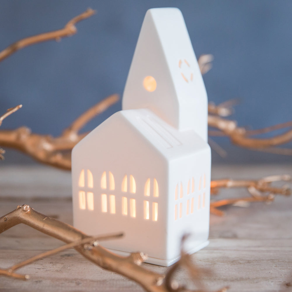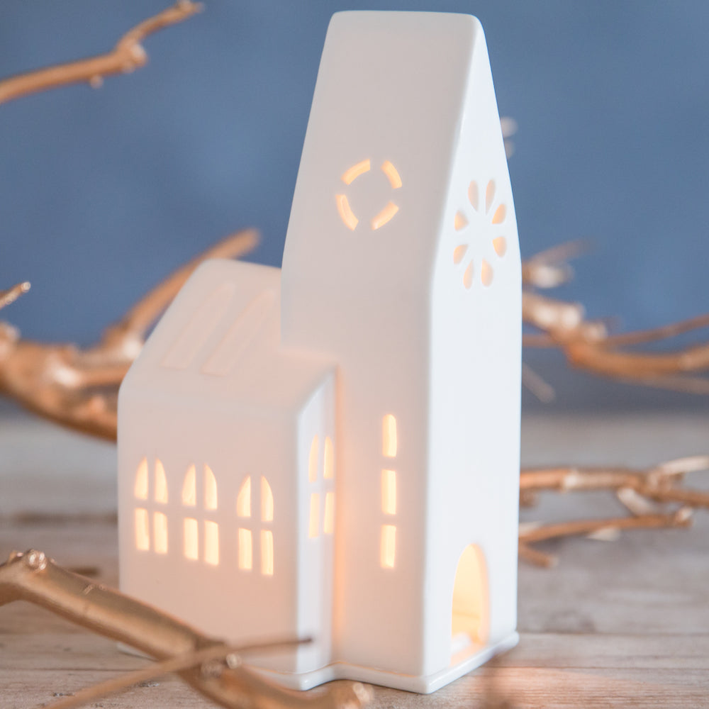 Nicht nur an Weihnachten erstrahlt das 18 cm Räder Lichthaus Kleine Kirche, nein auch zu jeder anderen Jahreszeit ist dieses Lichthaus ein richtiges Highlight! Stelle eine Kerze oder ein Teelicht auf die unter der Kirche dafür vorgesehene Platte und schon erhellt sie Dir den Tag. Falls Du kein Fan von offenem Feuer bist, eignet sich auch eine kleine Lichterkette – so oder so, das Lichthaus Kleine Kirche erwärmt jeden Raum.