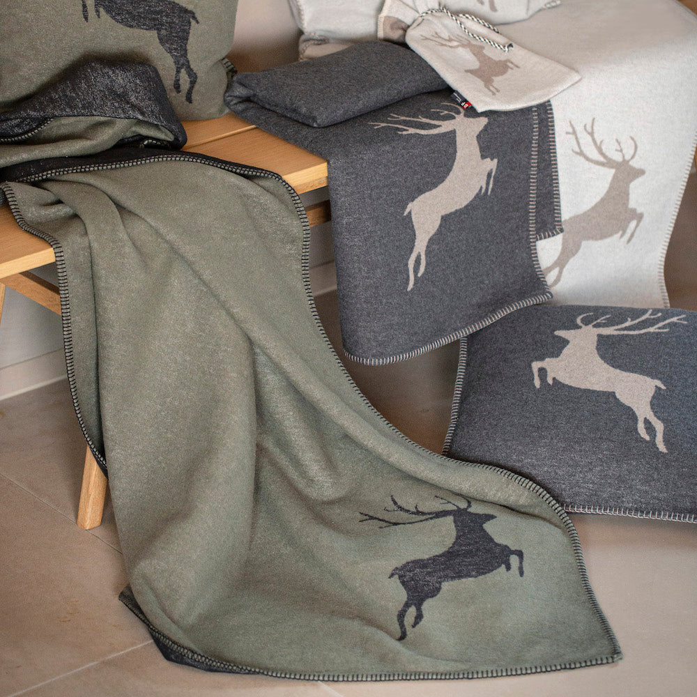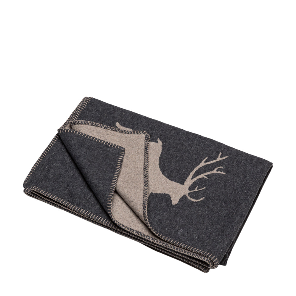 Skandi Baumwolldecke Hirsch Dunkelgrau