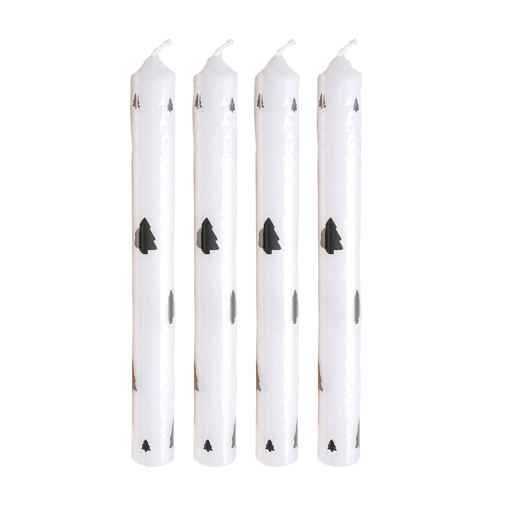 Unsere festliche Stabkerze Tannenbaum wird im praktischen 4er-Set geliefert, sodass Du sie perfekt für Deinen Adventskranz nutzen kannst. Einzeln oder als Paar lassen sich die Kerzen natürlich auch nutzen. Ganz nach Herzenslust. Die weiß-schwarzen Stabkerzen haben eine klassische Größe von 20 x 2,2 cm und bestehen aus Paraffin.