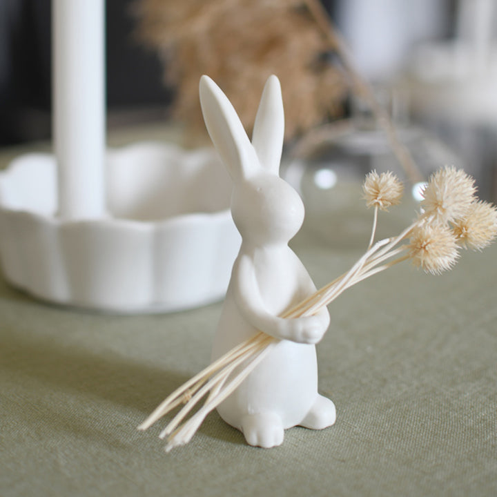 Ein besonderes Highlight sind Idas Vorderpfoten: Mit beiden Pfoten kann das kleine Häschen ein Blümchen, zarte Zweige oder dekorative Federn halten. So lässt sich Ida individuell gestalten und immer wieder neu dekorieren. Ob du frische Frühlingsblumen, Trockenblumen oder natürliche Materialien verwendest – Ida passt sich deinem persönlichen Dekostil an und setzt gleichzeitig einen liebevollen Akzent.