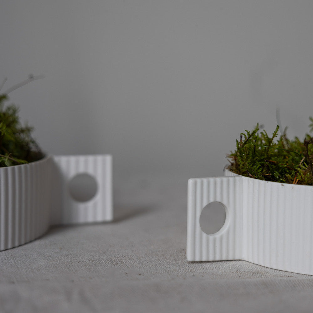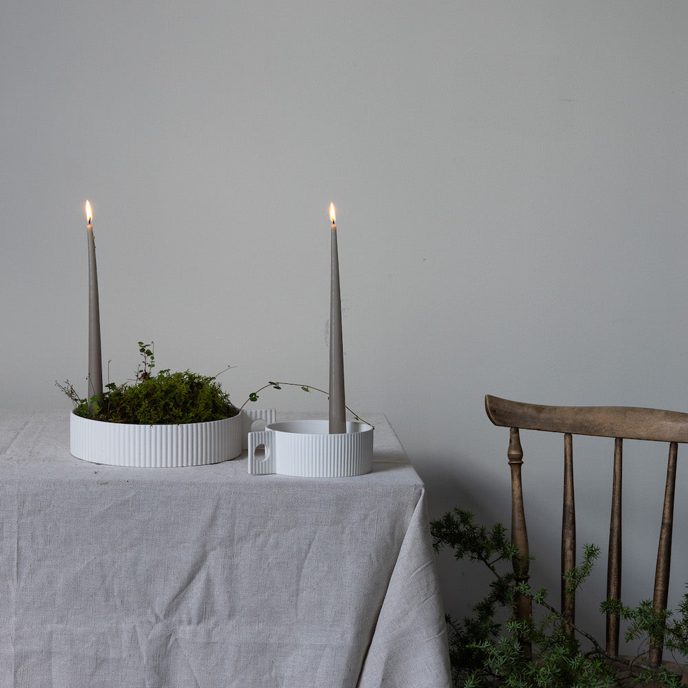 Der kleine weiße Kerzenhalter LIDABY aus dem Hause Storefactory lässt sich ganz nach Deinen Wünschen dekorieren. Der Kerzenhalter mit seinen stilvollen Längsstreifen ist aus unbehandelter matter Keramik gefertigt und ein wahrer Blickfang in Deinem Zuhause. Mit seinem Durchmesser von 19 cm und einer Höhe von 6 cm lässt er sich sehr gut mit anderen Kerzenhaltern kombinieren.
