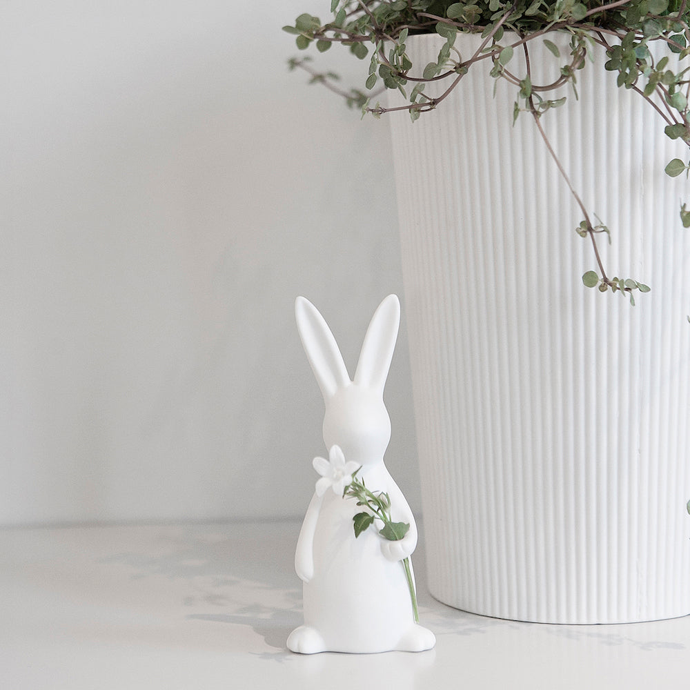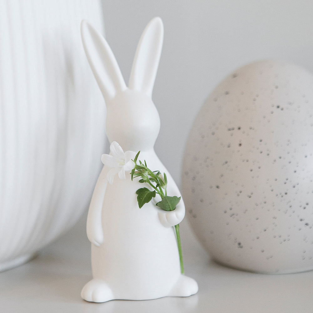 Das ist die kleine Svea – ein weißer Keramikhase von Storefactory, der deine Osterdekoration auf besonders stilvolle Weise bereichert. Mit ihrem schlichten, skandinavischen Design und der ruhigen Ausstrahlung fügt sich Svea harmonisch in unterschiedlichste Wohnstile ein und setzt dennoch einen liebevollen Akzent. Die matte Keramikoberfläche unterstreicht ihre zeitlose Eleganz und macht sie zu einem dekorativen Blickfang in der Frühlings- und Osterzeit.