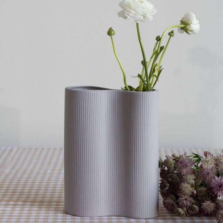 Diese stilvolle Vase aus matter Keramik bringt Ruhe und Eleganz in jedes Zuhause. Ihre sanft geschwungene Form strahlt Harmonie aus und erzeugt eine angenehme, beruhigende Wirkung, die sich im Raum verteilt. Die klare, reduzierte Gestaltung macht die Vase zu einem zeitlosen Dekorationsstück, das sowohl allein als Highlight wirkt als auch wunderbar mit anderen Elementen der Kollektion kombiniert werden kann. Das dezente Linienmuster auf der Vase harmoniert mit vielen weiteren Produkten und lässt sich leicht in stimmige Arrangements einfügen.