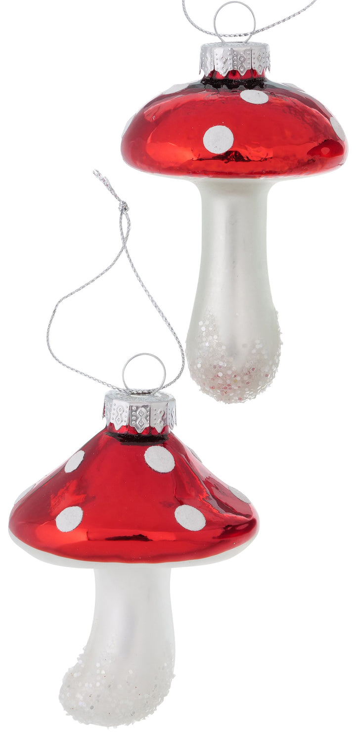 Weihnachtsanhänger Pilze 2er-Set rot glänzend