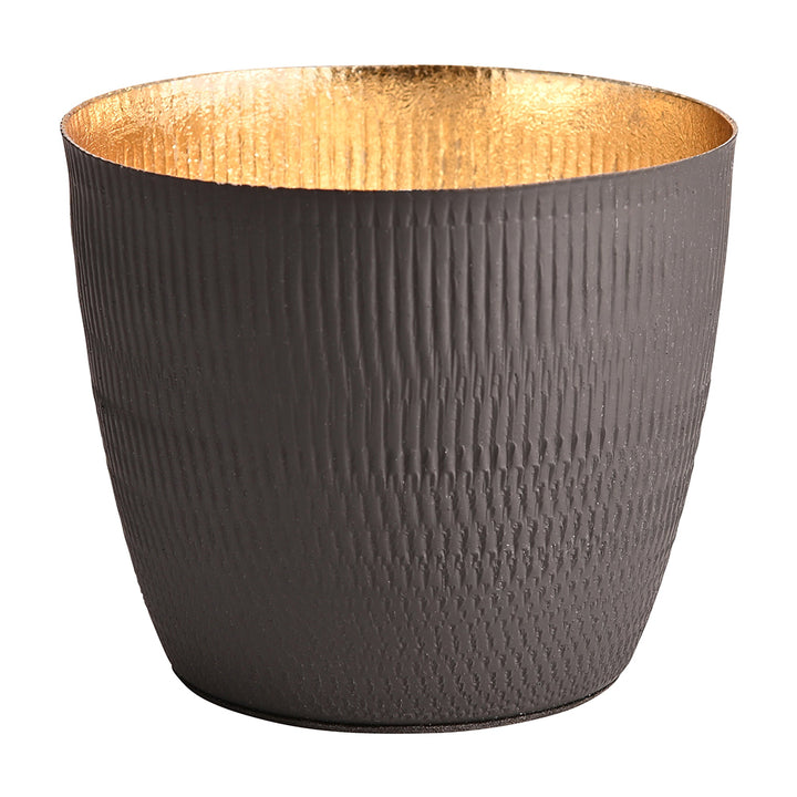 Das schwarz-goldfarbene Windlicht mit seinen feinen Rillen wird Dich sofort begeistern. Mit einem Durchmesser von 10 cm passt es gut auf jede Fensterbank oder Kommode. Kombiniert mit weiteren Windlichtern schaffst Du so eine traumhafte Atmosphäre. Lasse Deiner Kreativität freien Lauf.